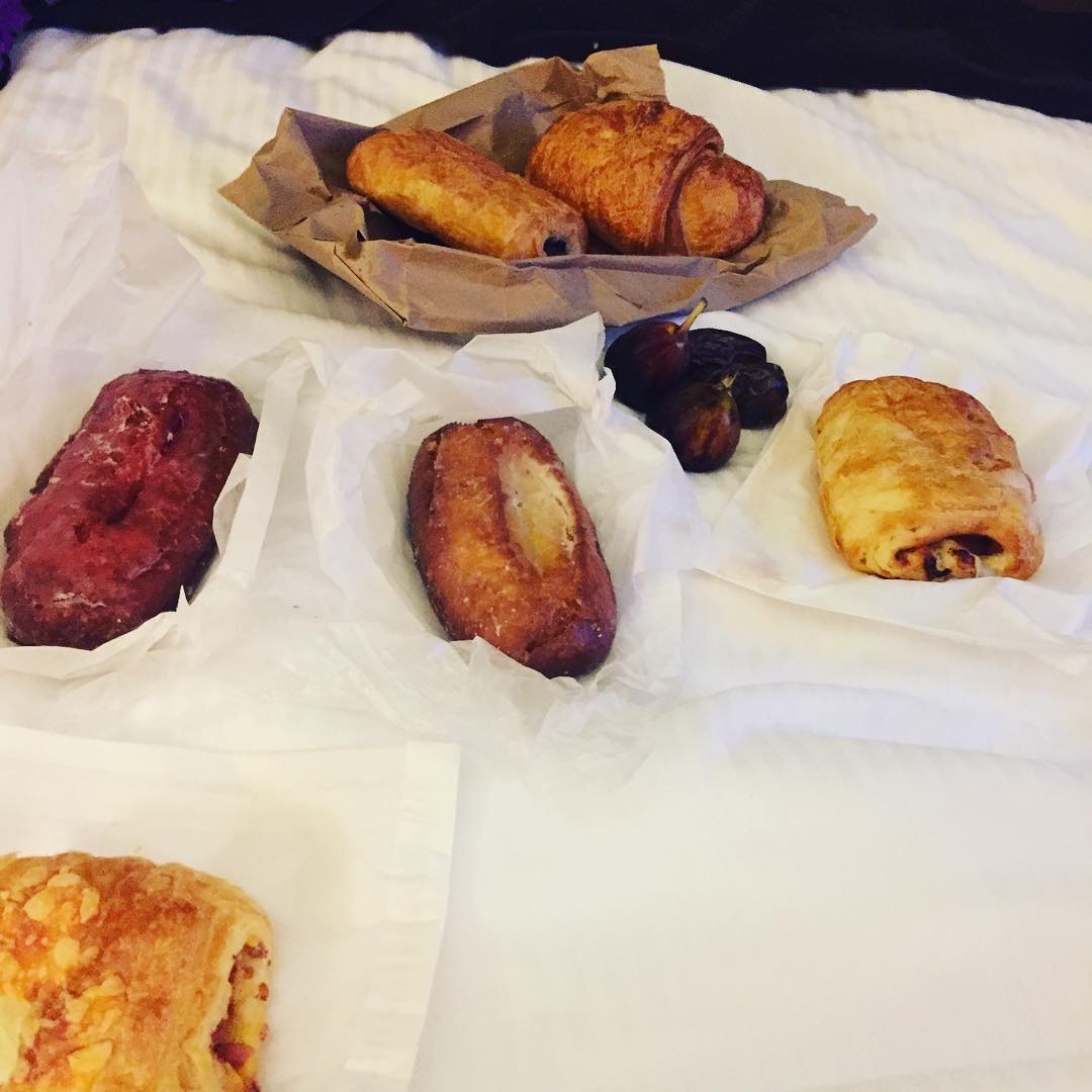 Thank you Pike Place Market for supplying the fixings for breakfast in bed! Various croissants, a couple donuts, and fresh dates and Turkish figs for Prairie.
